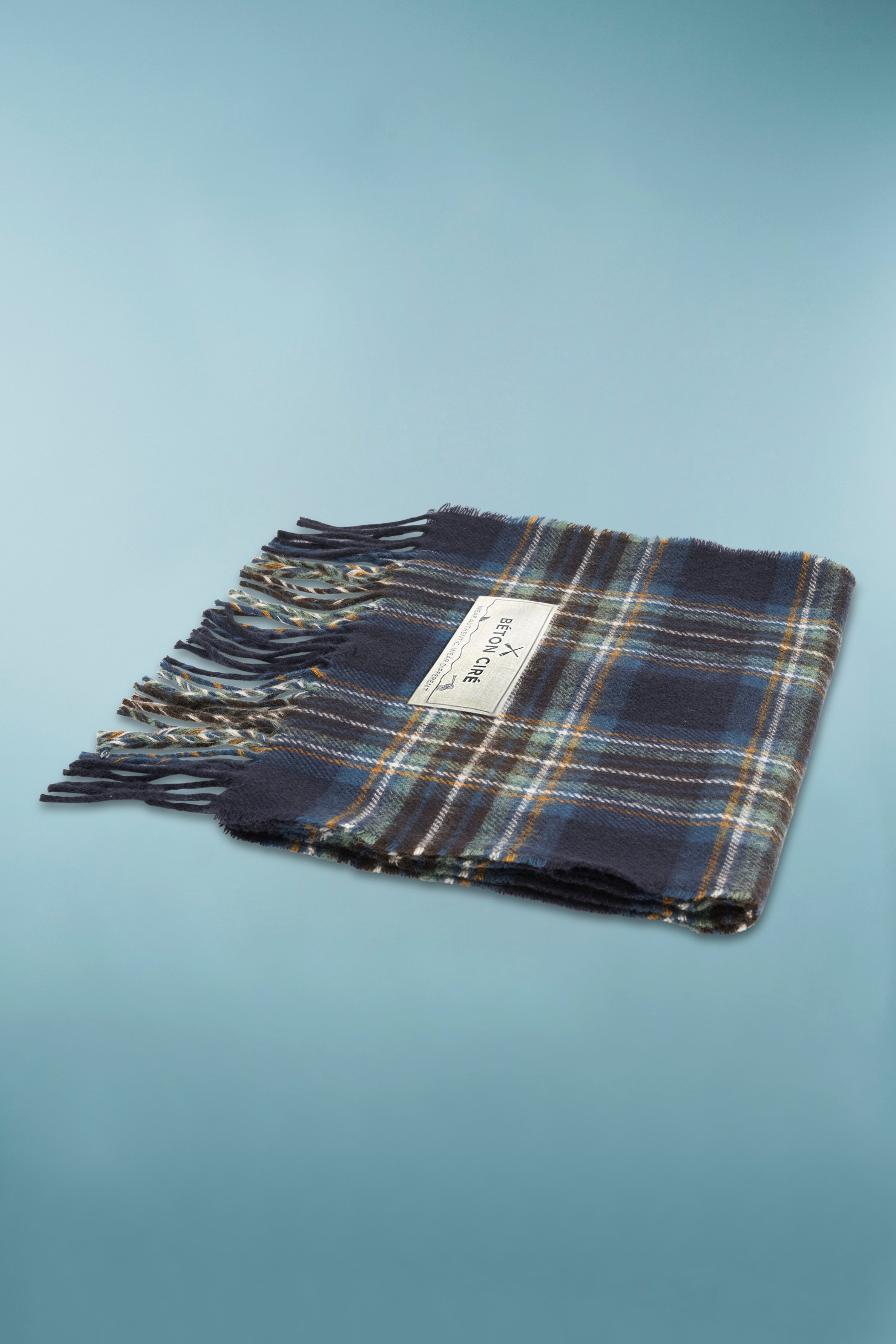 ÉCHARPE EN LAINE D'AGNEAU BLEU ÉCOSSAIS