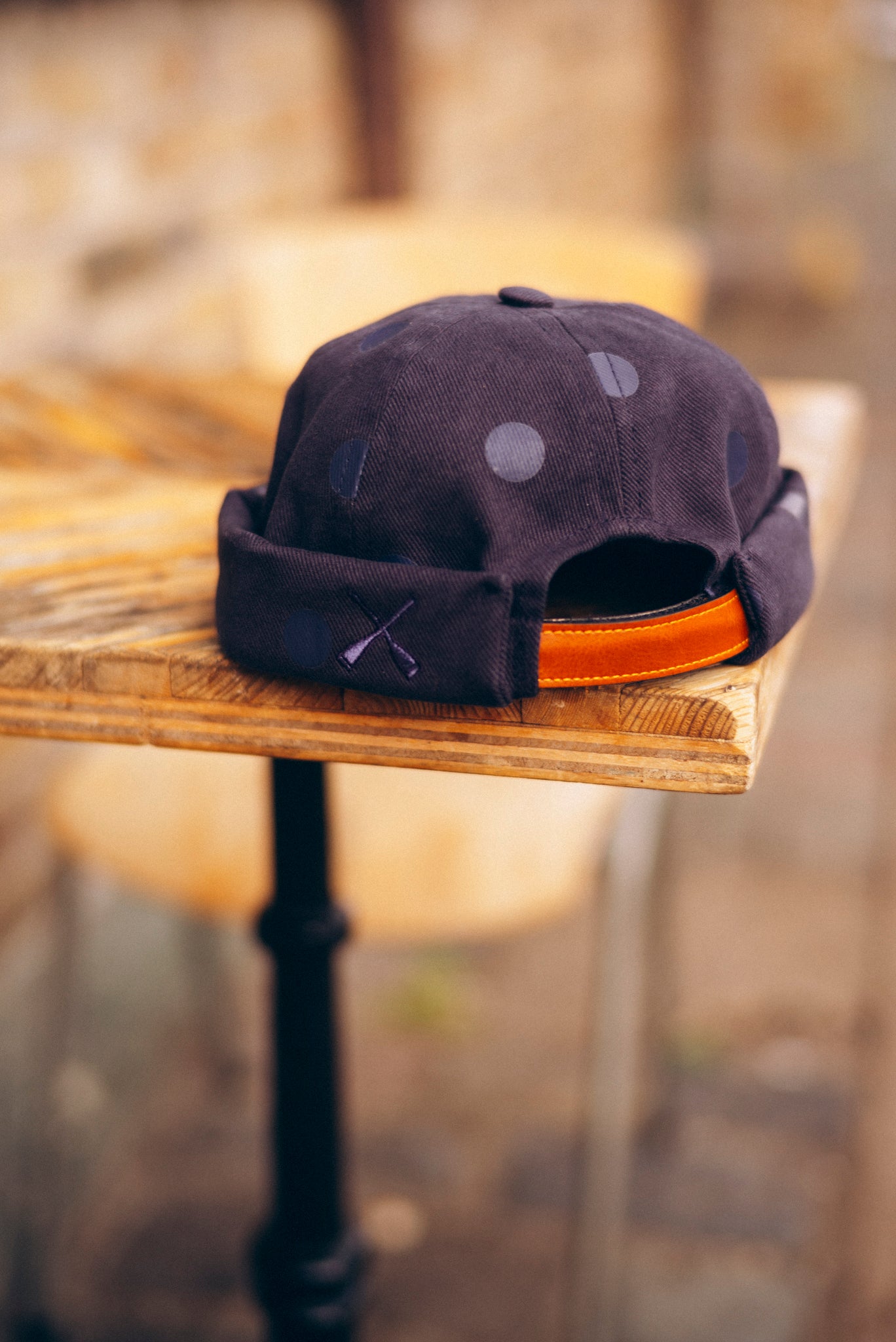 Made from 100% navy cotton moleskine, it retains the signature Béton Ciré shape: rounded crown, no brim, and a clean, structured finish.