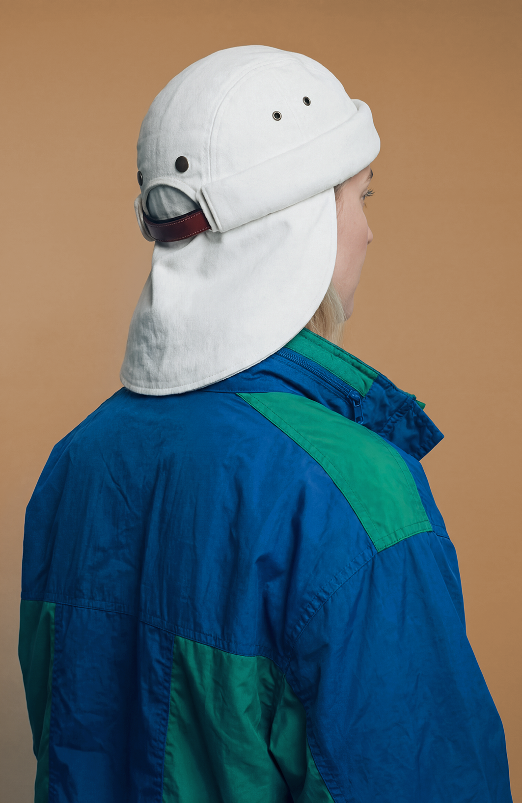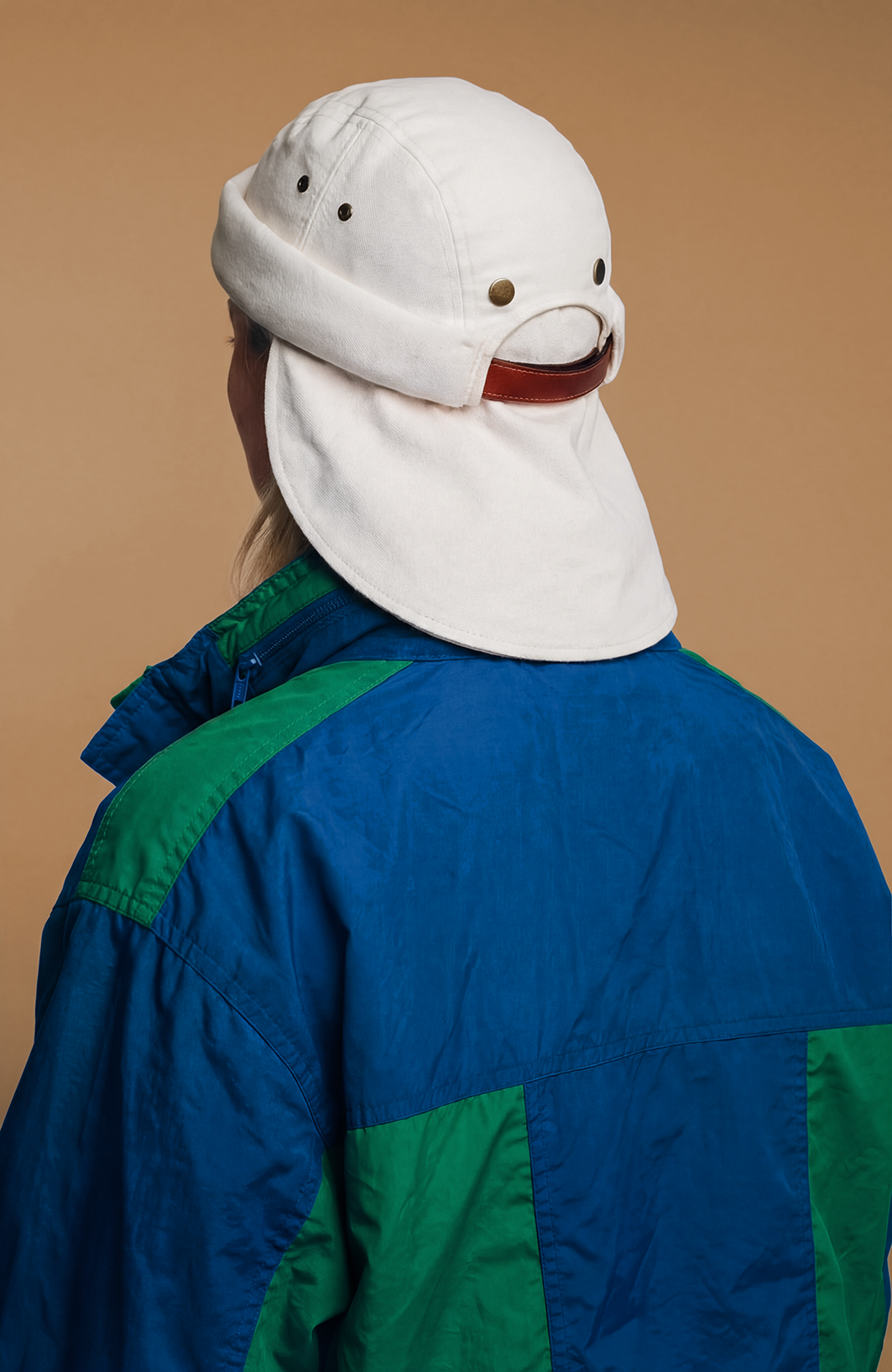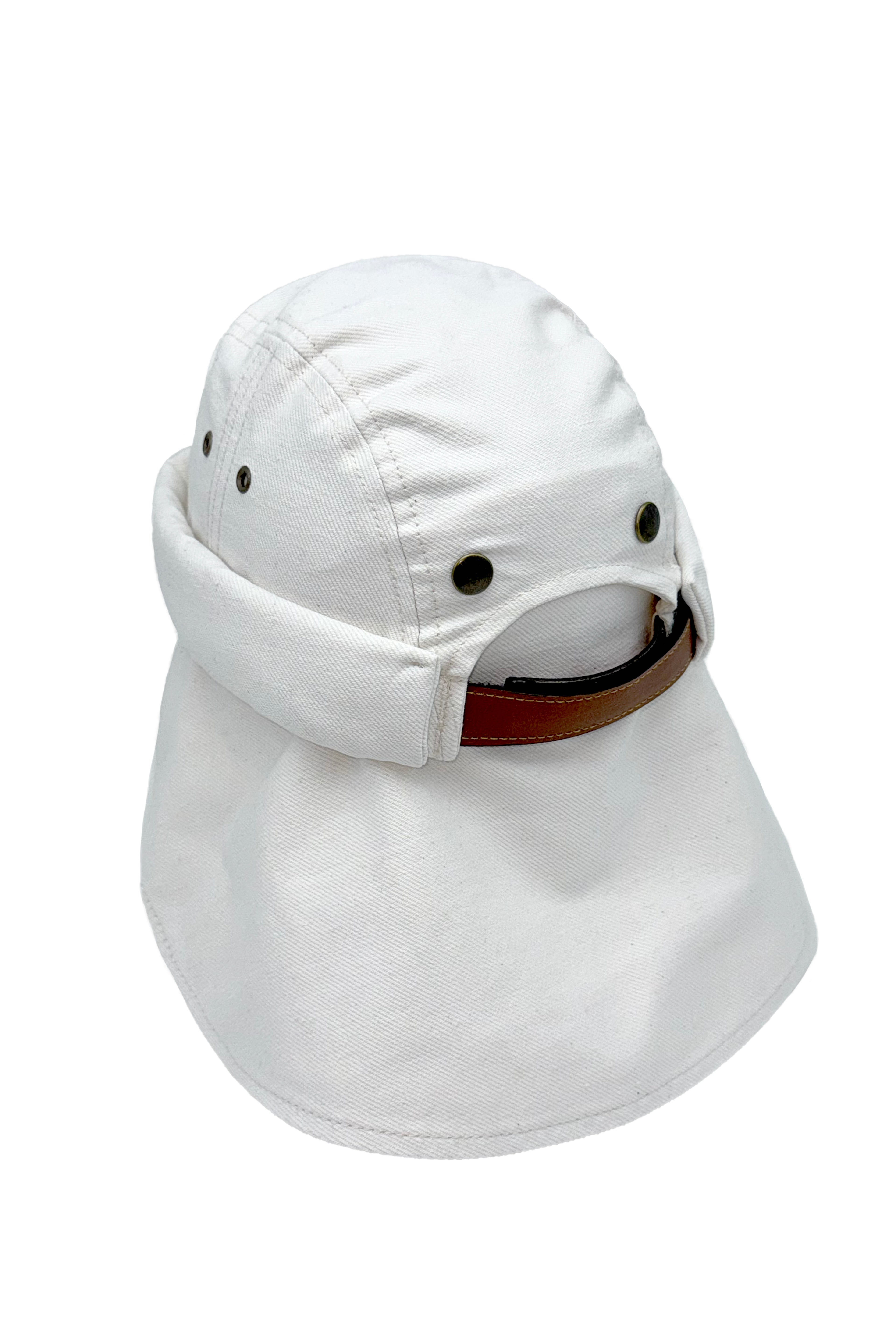 While maintaining the signature short, rounded docker silhouette, this version introduces a technical feature: a detachable extended brim, secured with discreet snap buttons. It provides enhanced sun protection during prolonged outdoor exposure, while allowing you to return to the clean, minimal miki shape in seconds.